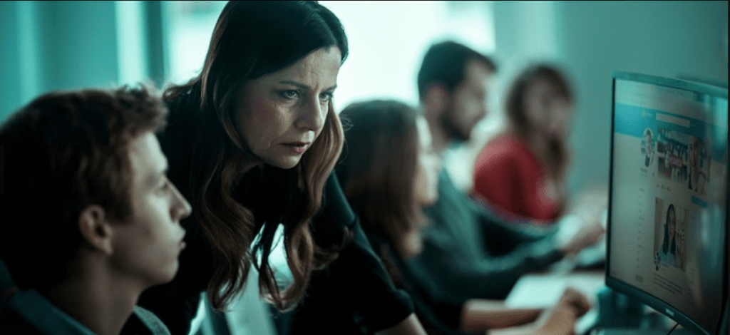Komasa powraca tu także do myśli rozpoczętej w „Sali samobójców”, dotyczącej siły rażenia social mediów i konsekwencji, jakie tworzyć może manipulacja – tym razem na znacznie większą skalę. Ciekawa jest też postać Kuleszy – mimo traumatycznych przeżyć przedstawiona tutaj jako twardo stąpająca po ziemi, potrafiąca osiągnąć co sobie zamierzy, a szukanie szczeliny, która sprawi, by pękła, będzie istotnym motywem filmu.