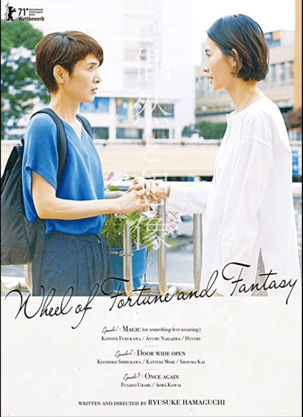 Film Ryûsuke Hamaguchiego zdobył w Berlinie Srebrnego Niedźwiedzia (Grand Prix). Trzy japońskie nowele (3×40`) – oparte na opowiadaniach reżysera-scenarzysty – tworzą spójną całość. Historie się nie zazębiają, ale w każdej z nich karty rozdaje przypadek. Zbieg okoliczności, czyjaś pomyłka, qui pro quo – uruchamiają sytuację i ryzyko. Co będzie, jeśli zareagujesz i dasz się ponieść. Jeśli impuls włączy fantazjowanie? W wywiadzie udzielonym NH Hamaguchie mówi: „Przypadki uruchamiają podejrzenie, że istnieje inna wersja rzeczywistości”.