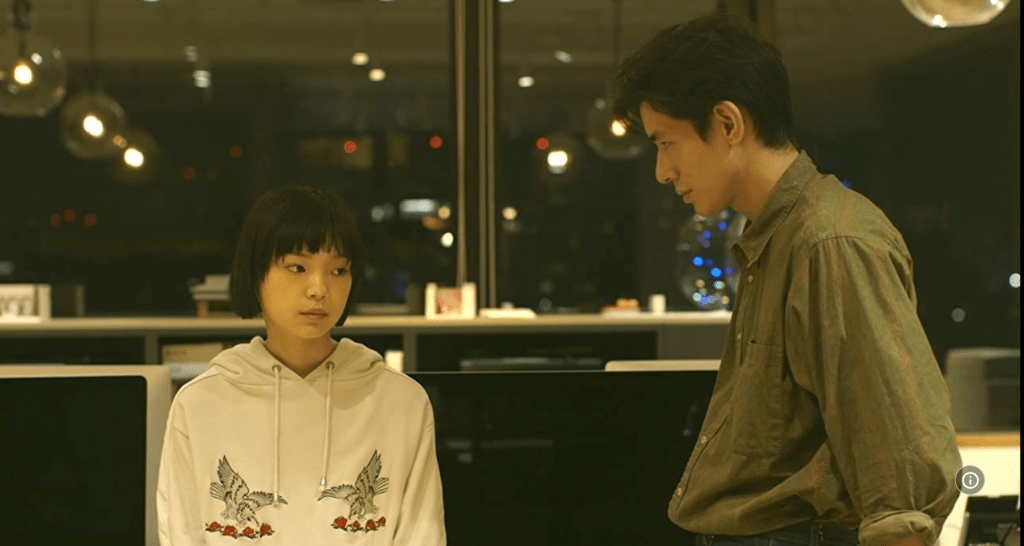Odrzuciłabym natomiast stemple gatunkowe. Można przeczytać w opisie, że to komedia, melodramat, film sf. Zgadzam się, że zaskoczenia są dowcipne. W nieokreślonej przyszłości dzieje się tylko ostatnia nowela, jedyna realizowana w czasie pandemii. Natsuko, specjalistka od IT, jest bezrobotna odkąd wirus Xeron wymusił powrót do tradycyjnej poczty, namieszał w danych i zmęczył ludzi światem wirtualnym. Jeśli to science fiction, to bardzo retro, raczej fikcyjne tu i teraz.